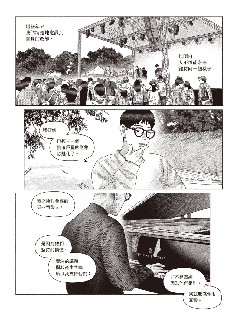 在大眾眼中,搖滾樂團、創作歌手被視為更「真誠」的演出形式,他們的詞曲反映現實社會,為青年世代譜寫心情,經常與社會運動並肩同行。近 10年間,這些歌聲在流行音樂之後也吹進中國,「聽團」成為台灣、中國年輕人共同的娛樂和窺探世界的窗。