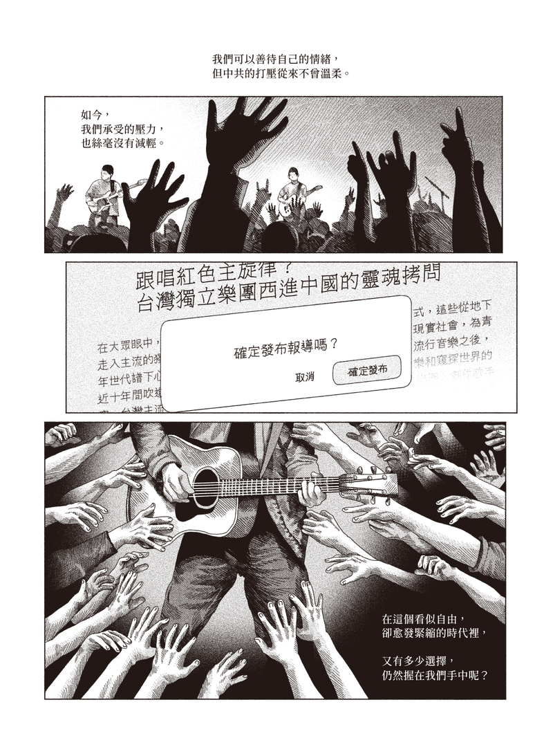 中共的政治紅線何時劃下,又如何落在音樂圈身上?對演出內容和音樂人言行的審查有多細緻?甚至「上台前一刻,突然被要求承認中國台灣」是怎樣的過程?