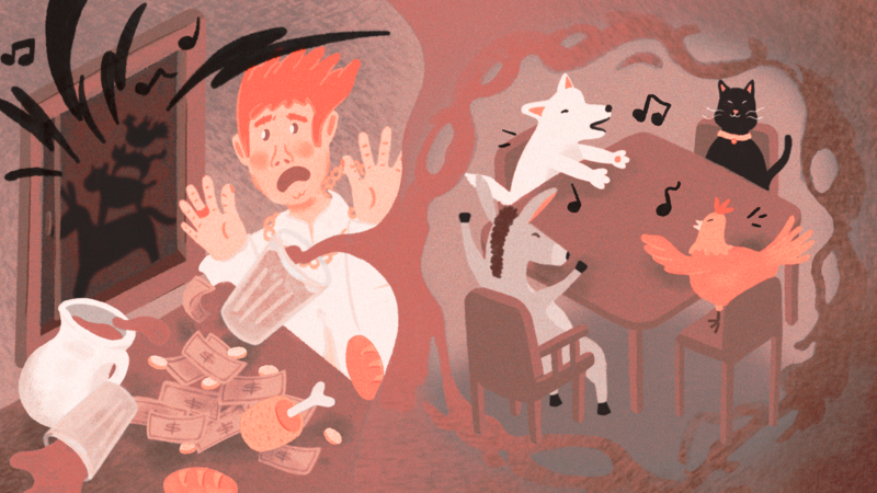 故事一開始,曾為主人經年累月打拼的每一隻動物,都因年老、失去勞動力而被其主人判處「經濟性死亡」,淪為即將被棄養或宰殺的弱勢族群:驢子再也馱不動穀物、狗追不到獵物、貓抓不了老鼠、公雞不再能準時報曉。牠們無法再為主人提供經濟上有用的勞務,主人因此認為牠們必須被淘汰,餵點飼料都嫌浪費,連苟活下去都不值得。牠們的生命價值,完全由其生產力而決定。