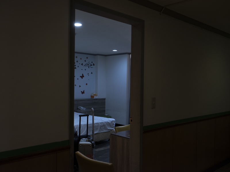 朋友們知我入冊,每日都跟我說無聊廢話,藉以解悶;吃大餐時又會跟我視像。我好多謝佢哋。但人與人的真實接觸呢?係零。除了有一次,因為太心急應門,送飯的酒店員愕然,沒想過會碰面。我有點不好意思,隨即關門。為了汲取一點稀薄的人氣,我日日留意著窗外的世界,把天上的雲、對面樓的天線、玻璃上的塵垢一一拍下。對面天台的水塔好像一雙眼,跟我對望。見到樓下公園有人打掃,心中稍感安慰。旅館對面是一幢住宅,但每晚都只有一戶人家亮燈。看著他們兩口子回家、開電視,我心想:「終於都有人啦。」 好想影相,唯有細心留意房內的一切:拍扁了的蚊、睡過的床單、洗澡的痕跡,乜都影一餐。《重慶森林》的梁朝偉跟番梘、毛巾對話,而我開始跟相機們對話:「拍檔,仲有幾日,捱埋佢。」坐困房內,唯一令我開心、有安全感的,是仍然可以影相。然後把六部相機逐一清潔,逐一摸吓佢哋。連我都覺得自己好宅。 失去自由可怕,冤獄更可怕